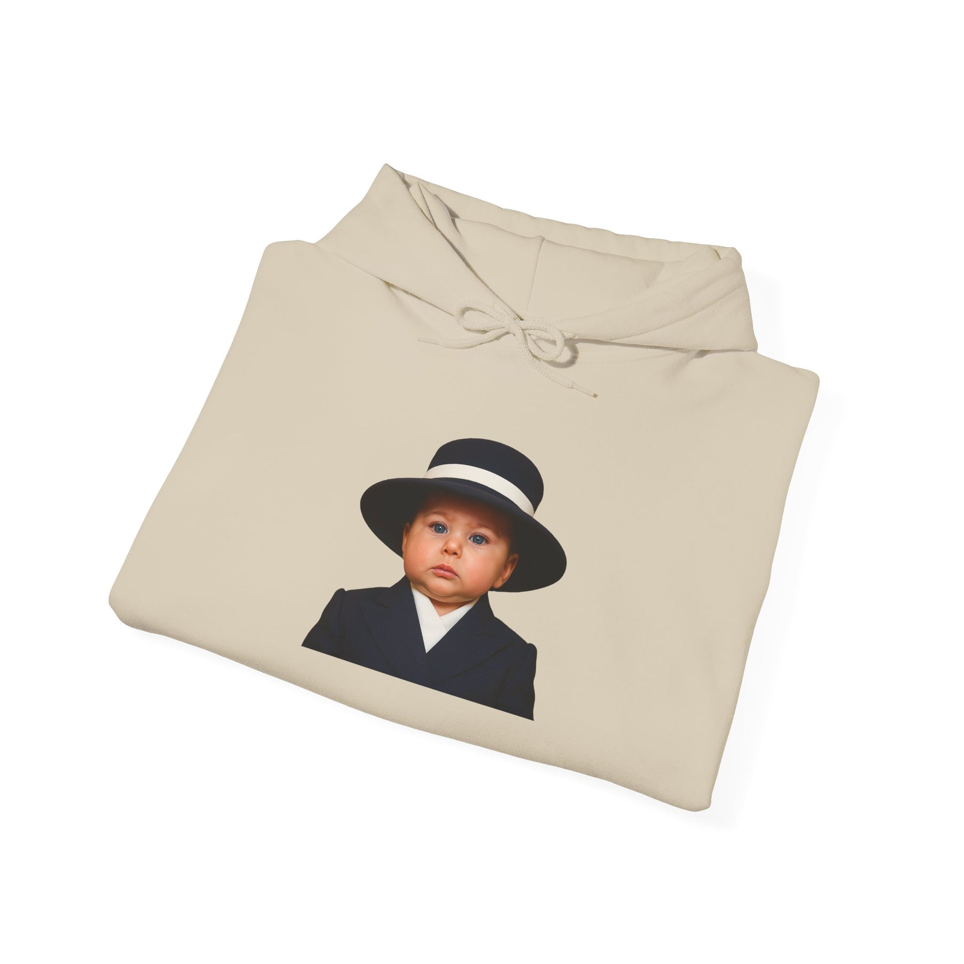 A pullover with an elegant appeal: roomy pocket, adjustable hood, and a silhouette that keeps its cool under lights and lenses. It’s off-duty couture—soft, structured, and perfectly unbothered.