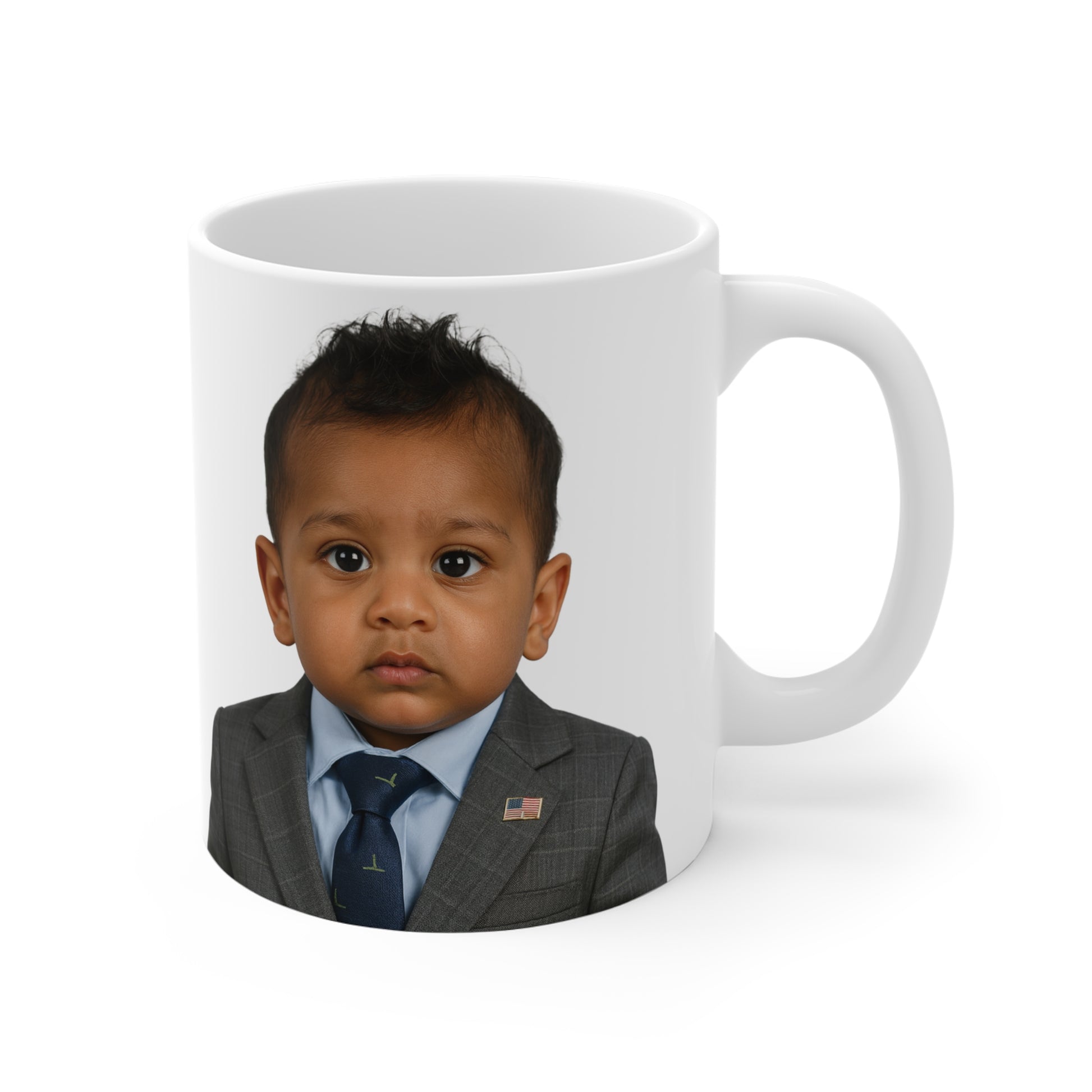 I run on intel, sunshine, and a hot cup of justice. This 11oz beauty is the official warm-up lap before I sprint through a day of “finding out.” It’s premium white ceramic, dressed like a whistleblower in Sunday best, and splashed with my most adorable baby-face bravado. Collect it, display it, sip from it—then ask your coffee what it knew and when it knew it.
