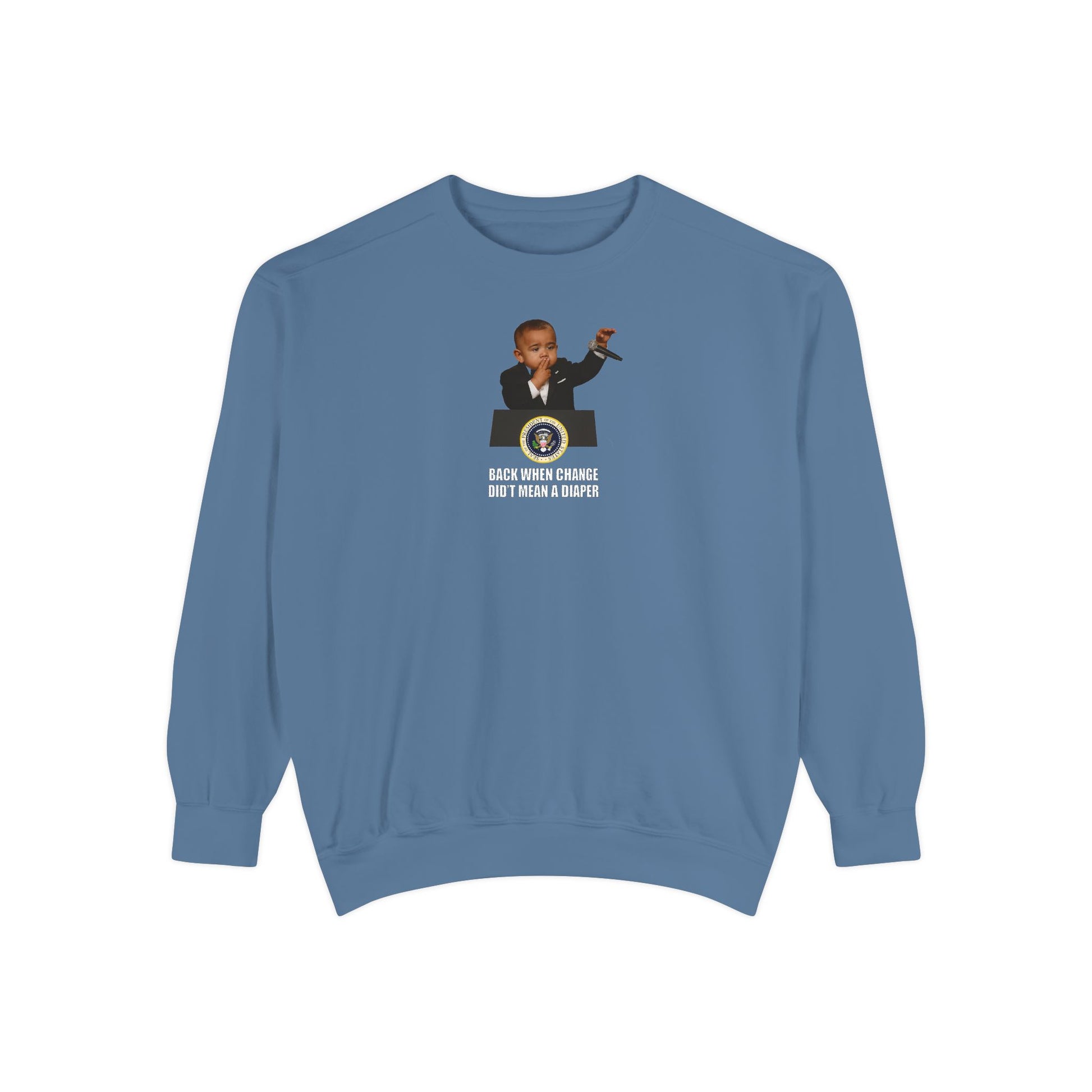 Back When Change Didn't Mean a Diaper Crewneck Sweatshirt - Barack Obama