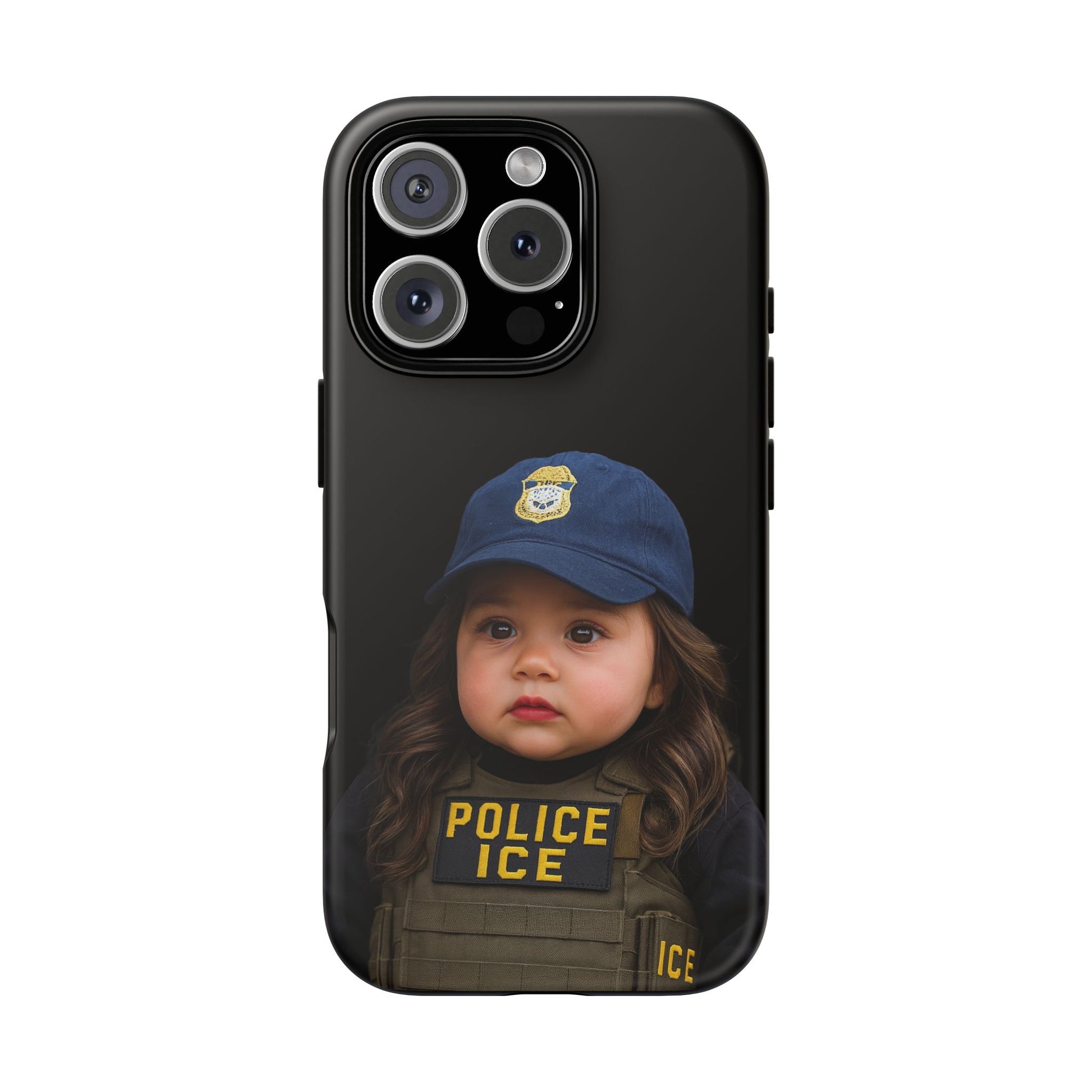 Kristi’s ICE-agent baby alter ego now guards your phone with the same ferocity she’d guard a juice pouch. This dual-layer case is as tough as her press conference poker face, and just as shiny.