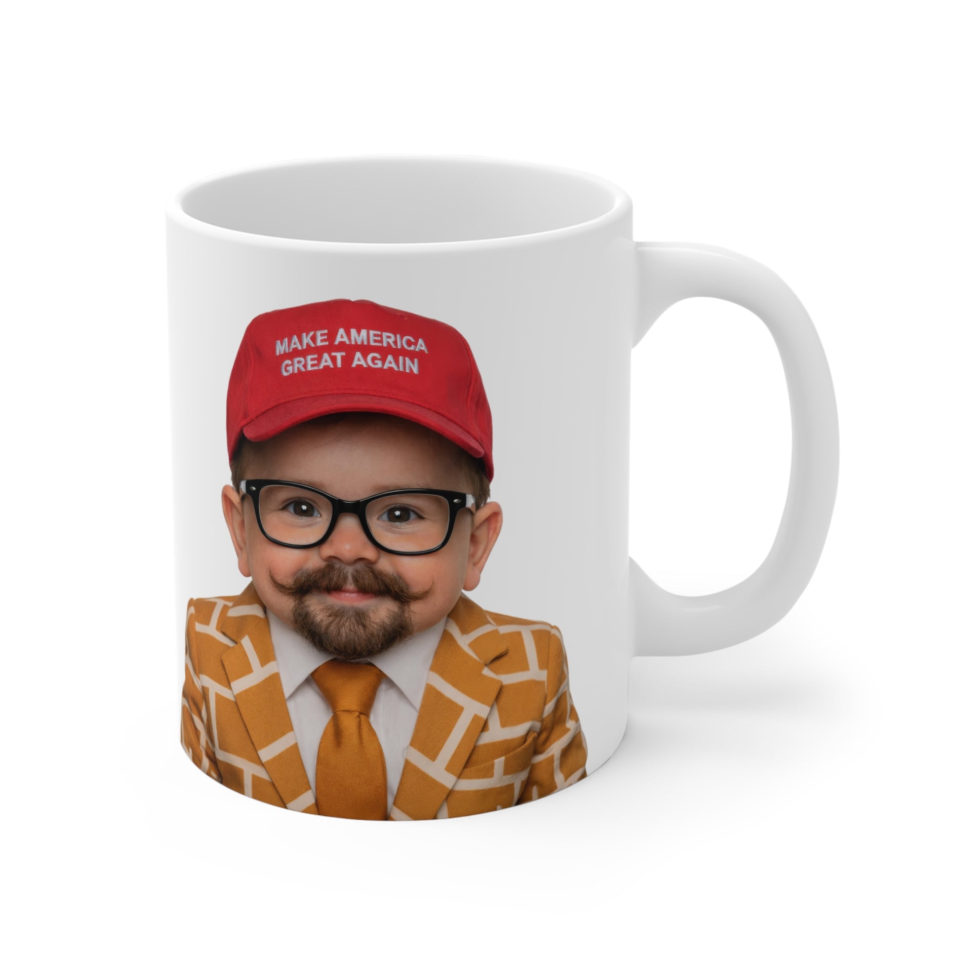Listen, I didn’t become Brick Suit Guy by blending in. I became a walking talking reminder that sometimes you have to show up dressed like a border wall and let the cameras do the rest. This 11oz mug is the official hydration station for people who like their coffee hot and their symbolism louder.