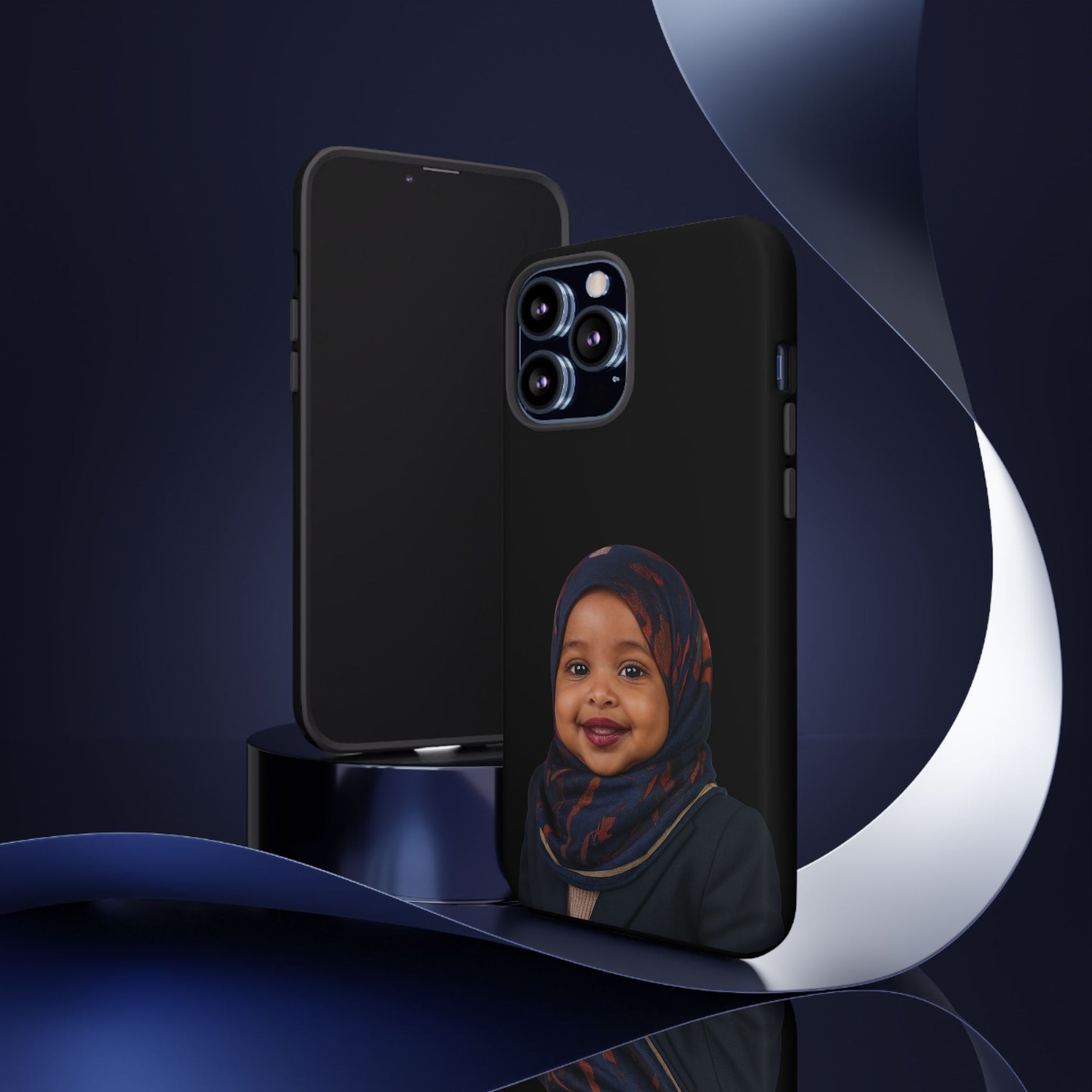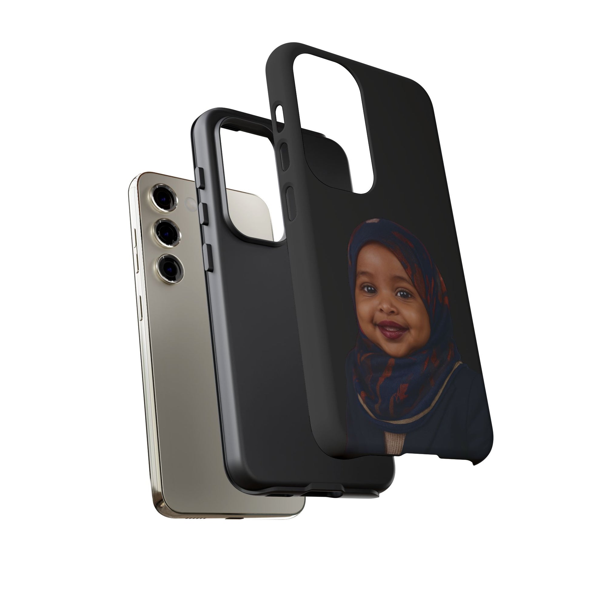 Protect your phone with the same energy I use to protect my values — unapologetically and with style. This dual-layer case features Baby Ilhan, ready to deflect both drops and dull opinions.
