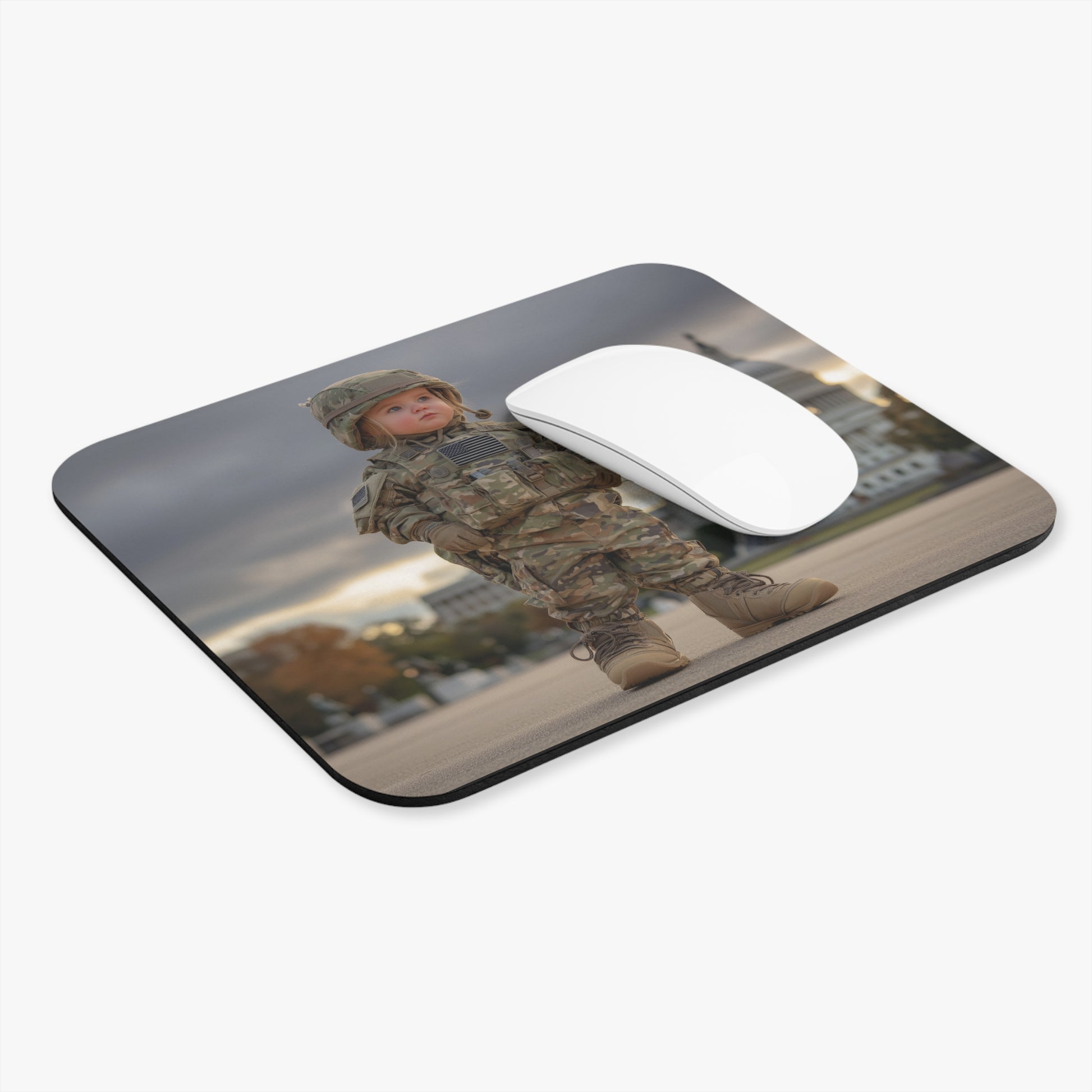 This mouse pad is for the real battlefield: emails, spreadsheets, and that one training module that takes 45 minutes to say “be responsible.” Full-coverage print means baby-Guard me is right there, supervising your cursor like a tiny NCO of productivity.