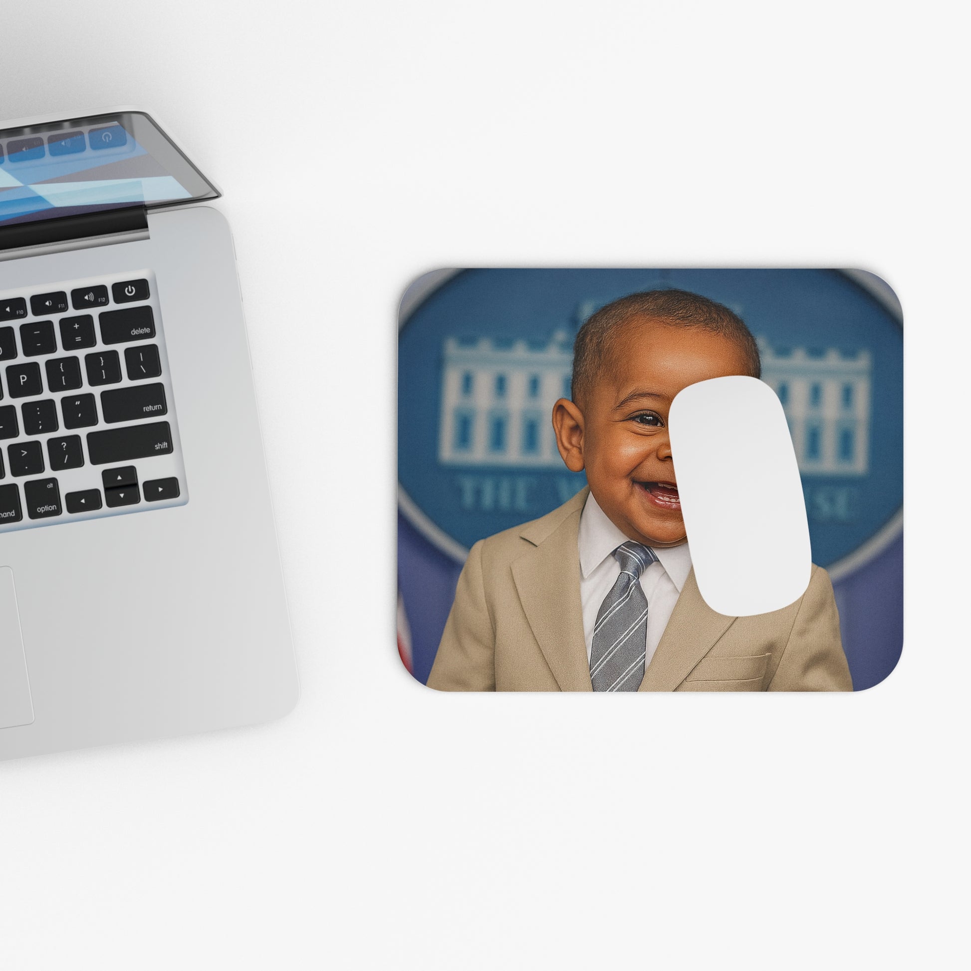 Slide your mouse across my smooth, tan-suited baby face, and watch productivity soar like approval ratings in 2009. This mouse pad brings presidential energy to every click, scroll, and questionable online purchase.