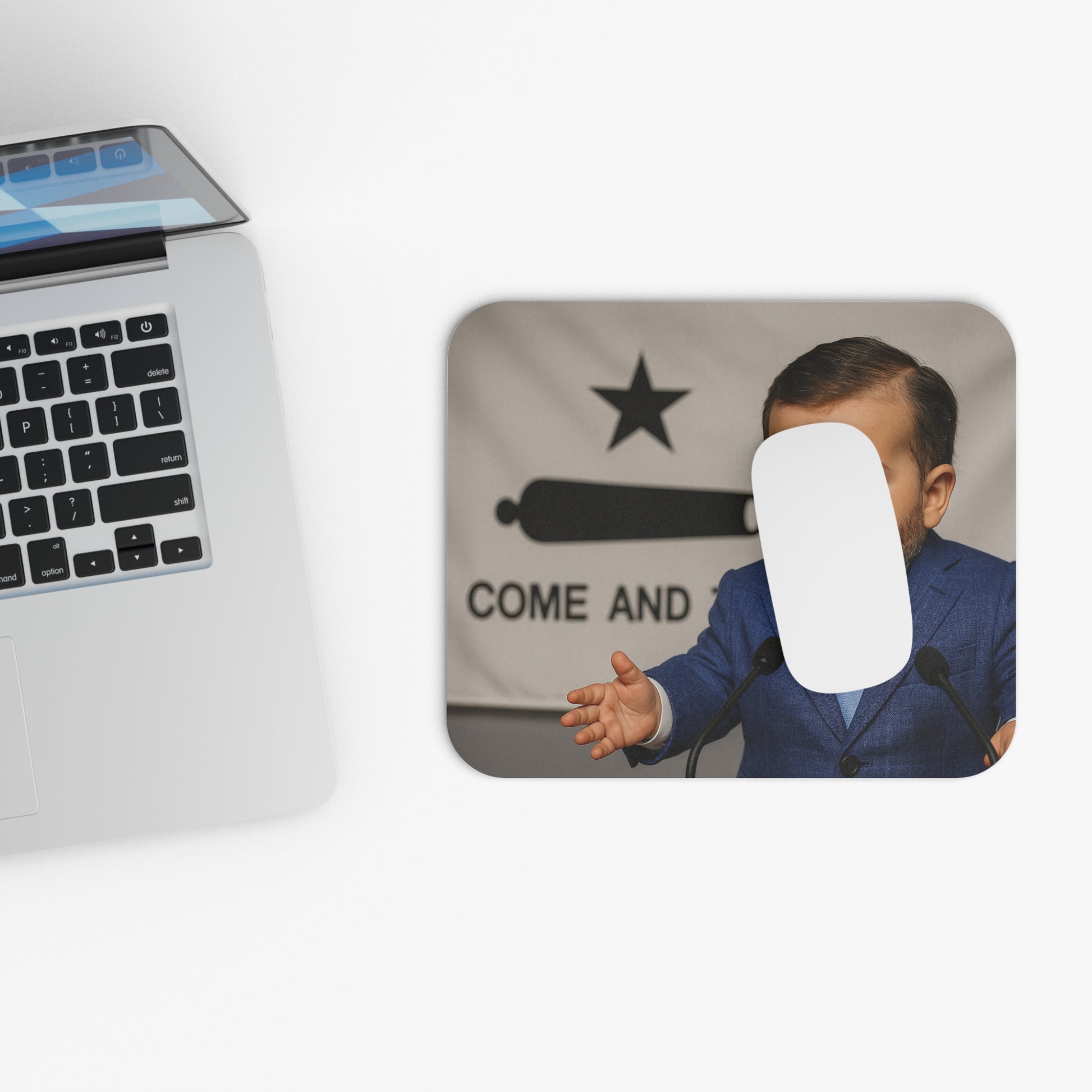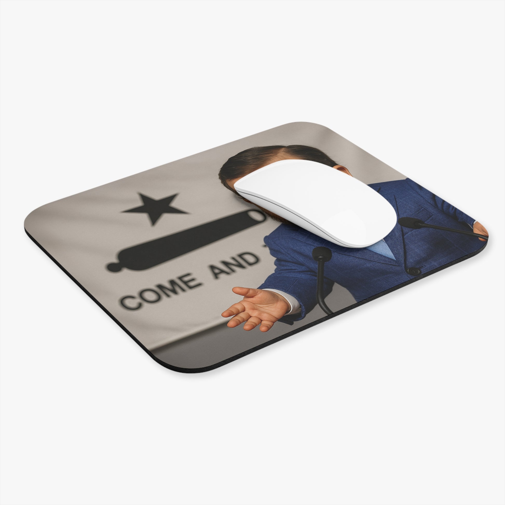 My face, your mouse, destiny. This pad plants the “Come and Take It” flag right by my cherubic campaign smirk, delivering pixel-precise patriotism to every click, drag, and dunk on your detractors. The surface is smoother than a Sunday sound bite and twice as satisfying.