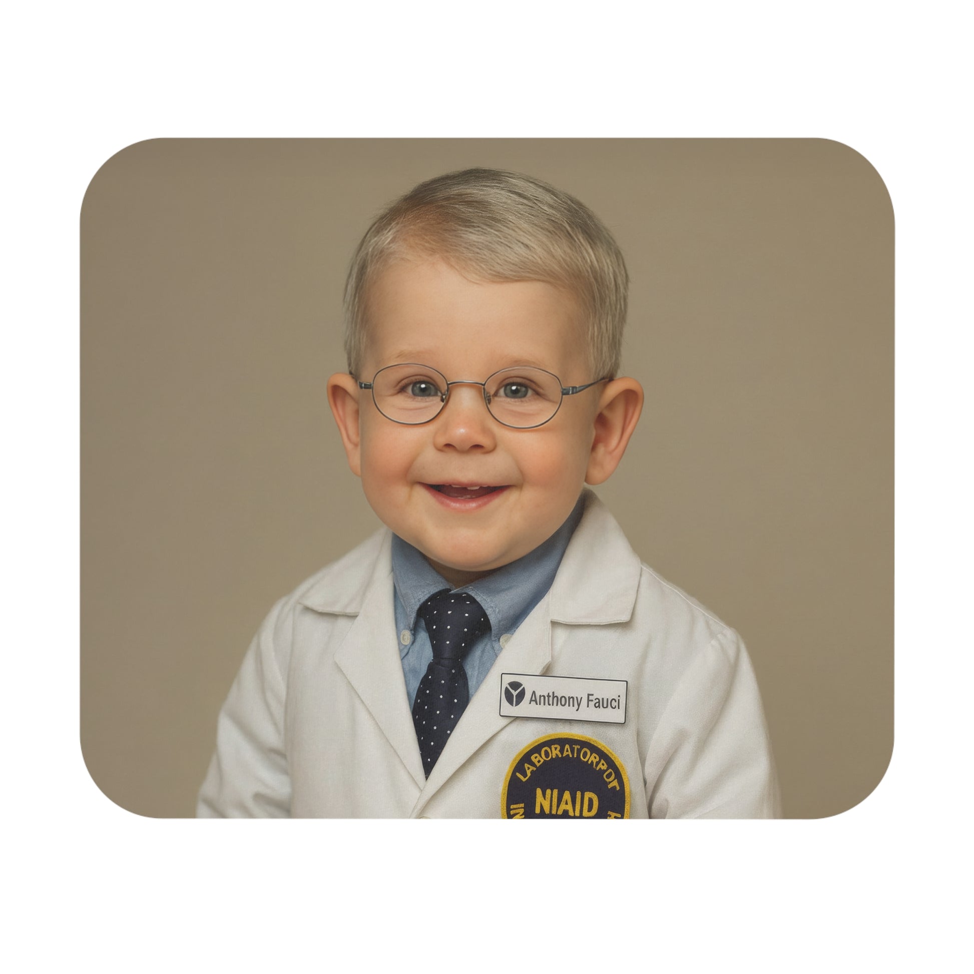 Your desk deserves a low-risk environment. This mouse pad combines a smooth cloth surface for precision tracking with a rubber base that grips like good methodology. Baby Fauci in festive mode brings measured calm to spreadsheets, slides, and sleigh-bell shopping.