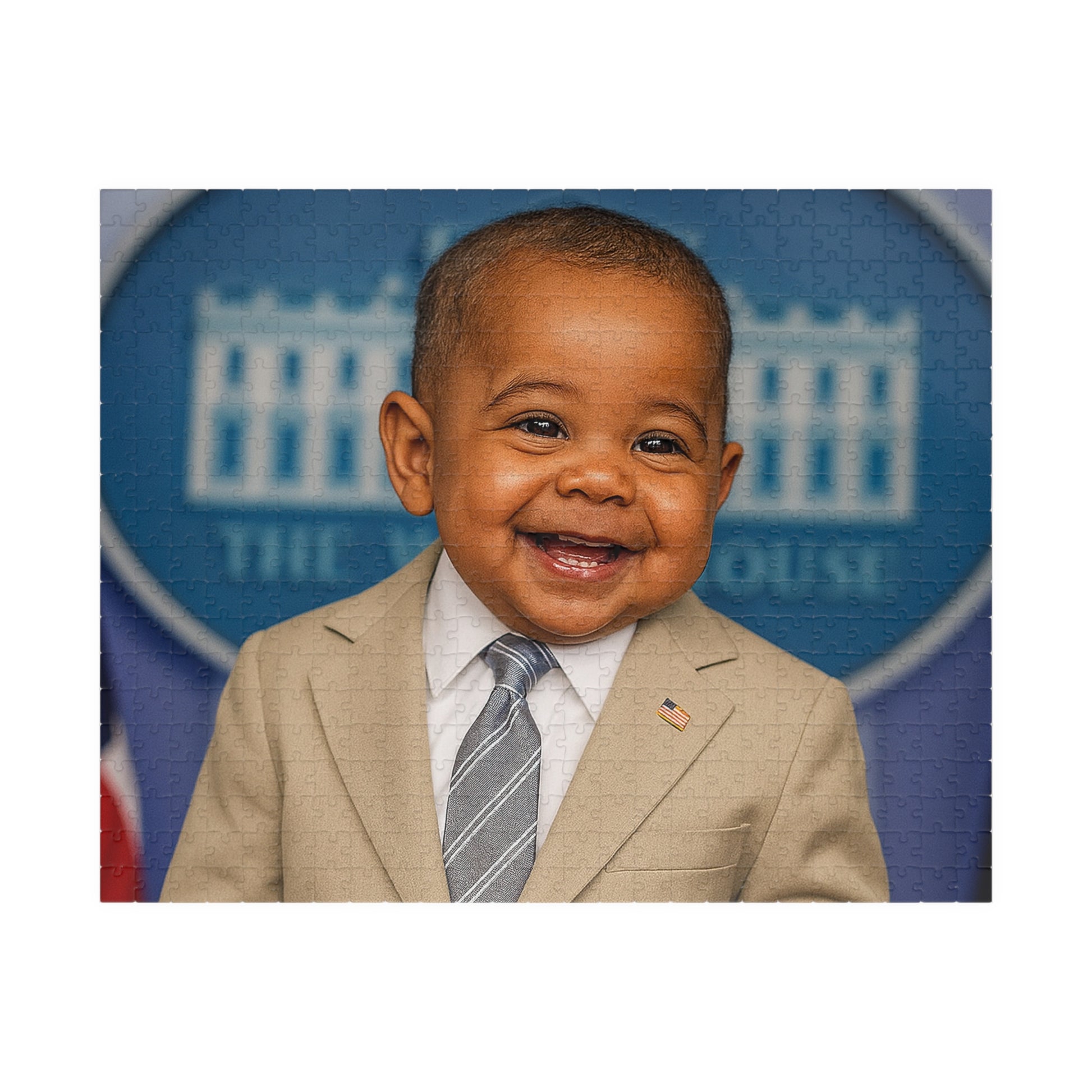 This 520-piece puzzle features Baby Barack Obama in his now-iconic tan suit, radiating calm, charisma, and a level of fashion sense that briefly endangered democracy (according to cable news). Reimagined with soft cheeks and presidential poise, this portrait pays tribute to the man who made beige look bold.