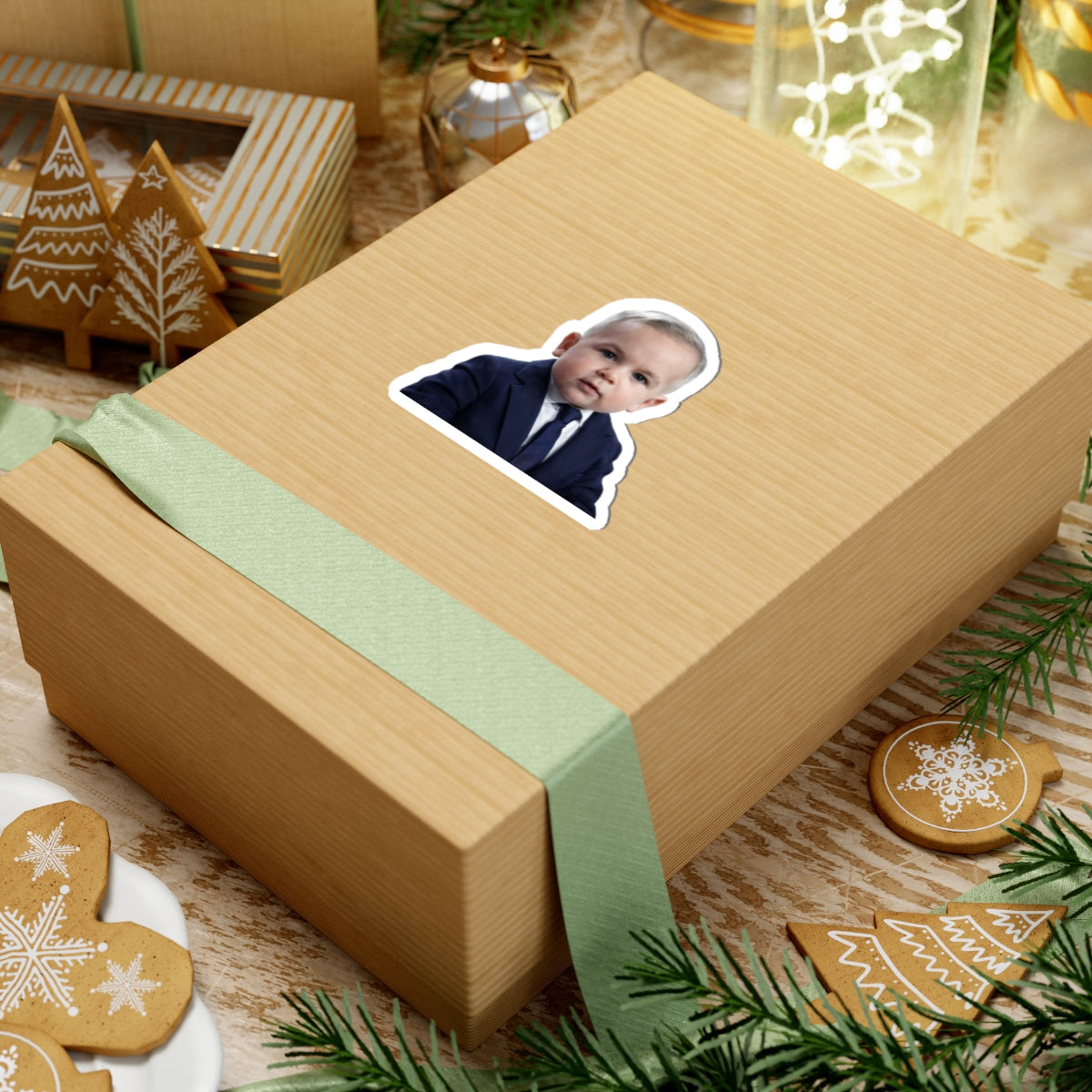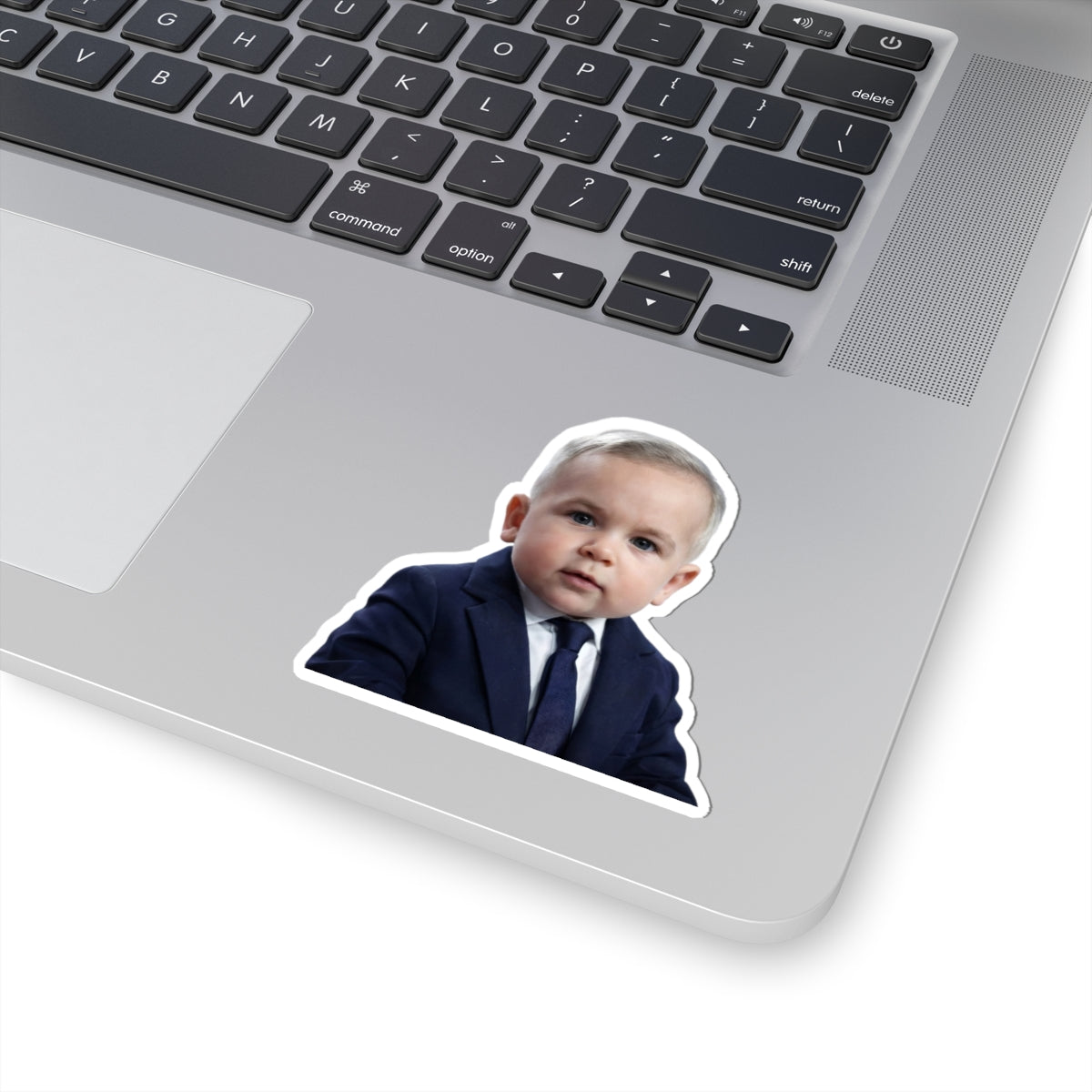 This is a sticker featuring Baby PM Me—small enough for your laptop, powerful enough to signal that you understand the macro and the meme. Consider it a highly visible commitment to stability, with a glossy finish.