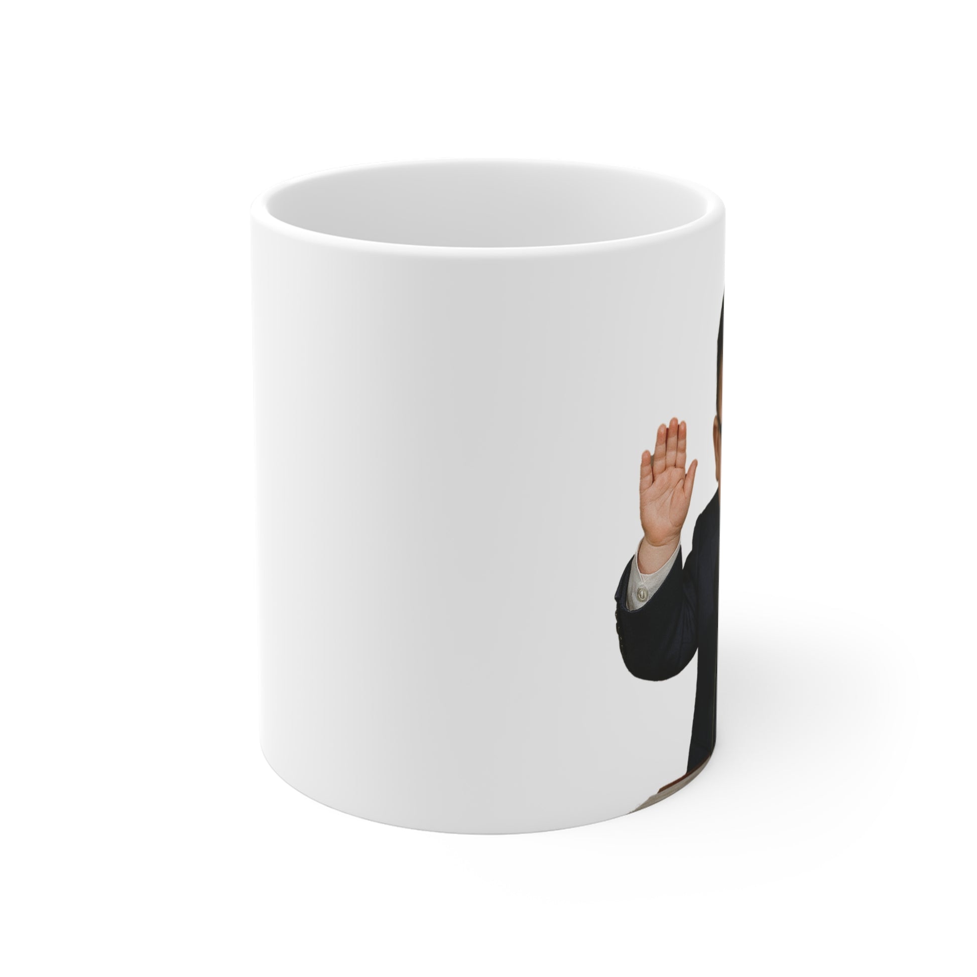 Folks, this isn’t just a mug — it’s a morning devotional disguised as premium ceramic. Sip your coffee like you’re sipping on moral clarity, with every gulp reminding you that leadership is best served hot and bib-ready. I call this mug my “pulpit to the people” because, let’s face it, nothing says faith and family values like drinking out of a tiny, squeaky-faced version of me.