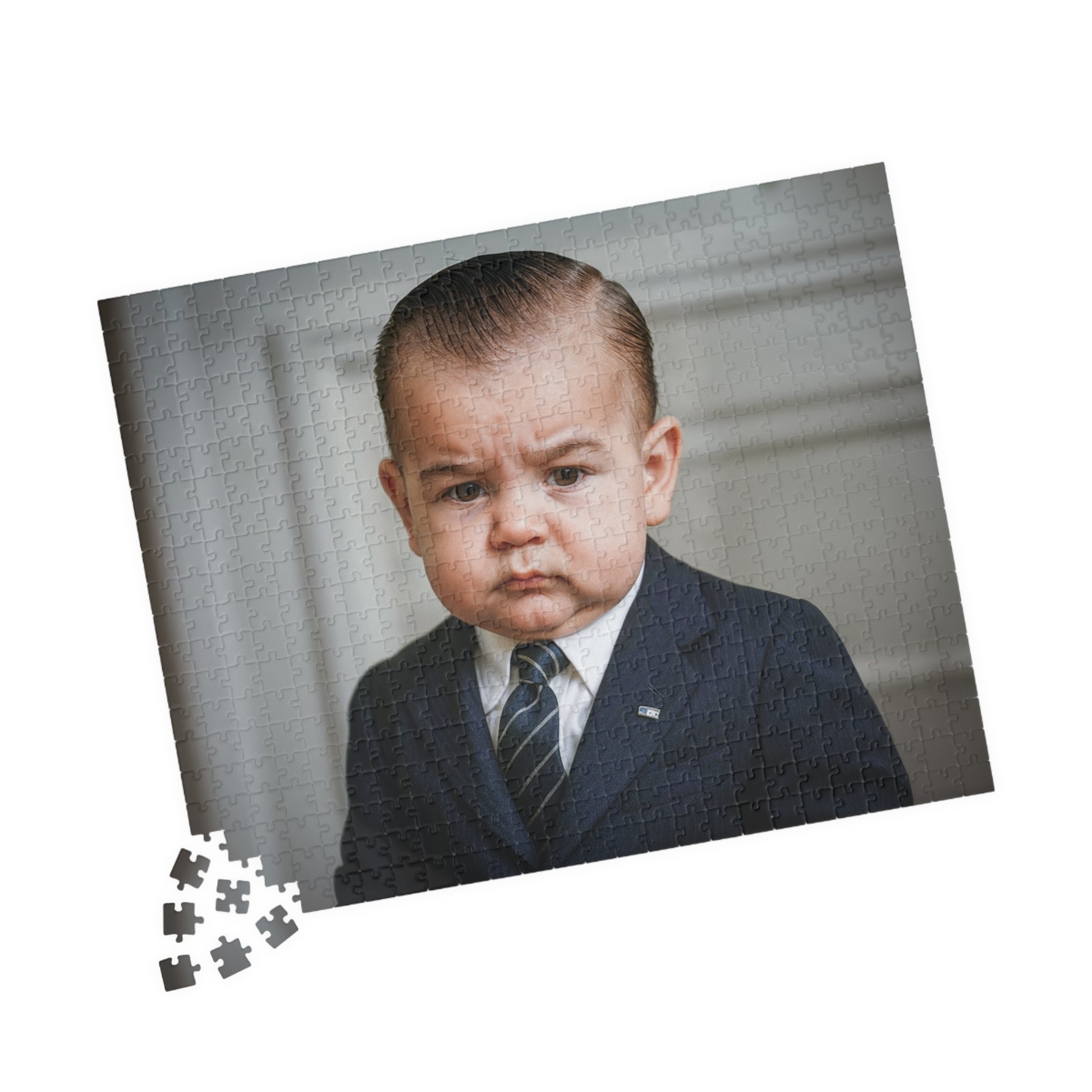 Build a coalition at your coffee table with this 520-piece portrait puzzle of LBJ—Texas tie, steely stare, history in the room. Printed in vibrant colors with a glossy finish, each interlocking piece snaps together like a bipartisan deal done before dusk.