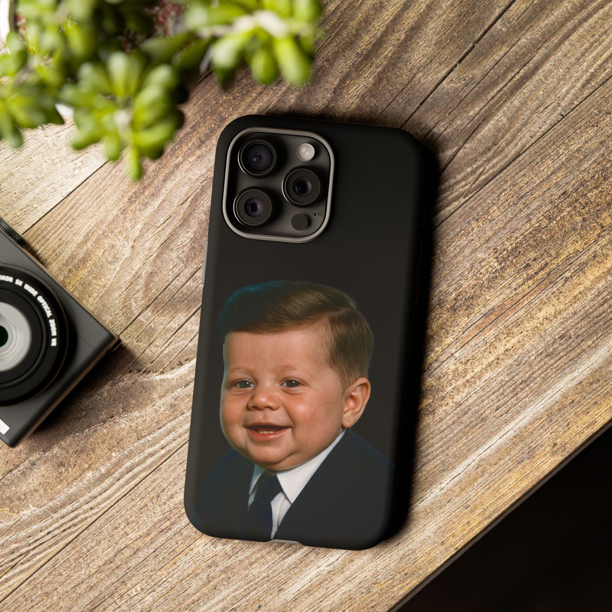 Dial into presidential swagger with the Baby JFK phone case. It’s sleek, stylish, and prepared for any crisis—Cuban or otherwise. Your phone will look as untouchable as my hair during a televised debate.