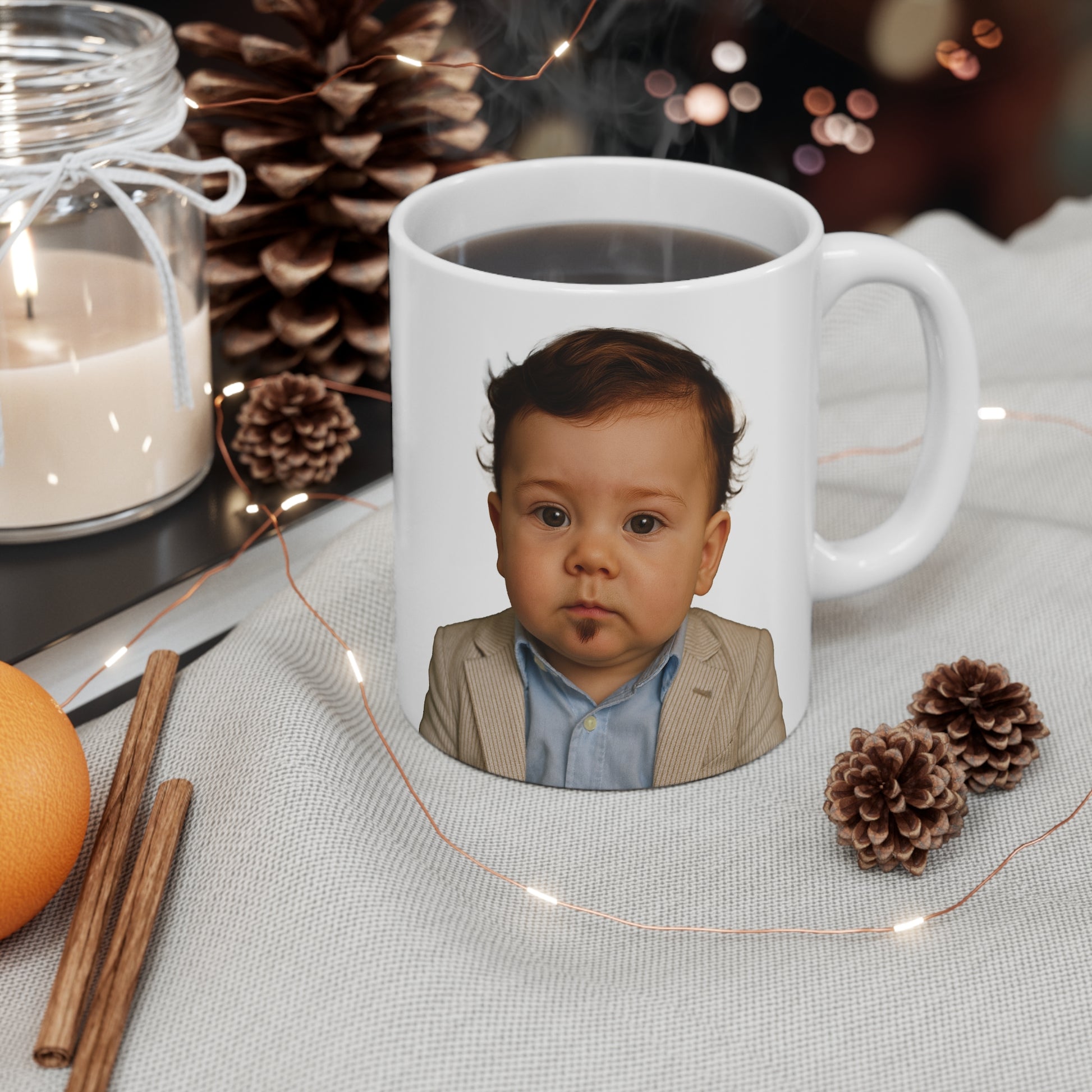 This 11oz porcelain podium is where strategy meets steam. It’s the Baby Ben vessel for early-morning memos, late-night segments, and the sacred interval in between when caffeine turns convictions into bullet points. Display it like a relic; lift it like a mandate.