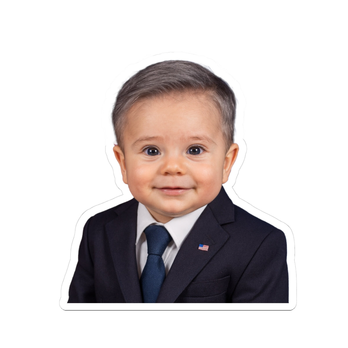 Stick this glossy symbol of soft power anywhere international cooperation is needed — or at least where coffee is served. Featuring my baby-blue gaze and world-weary optimism, this kiss-cut beauty turns any surface into a summit. Laptop? Water bottle? Refrigerator at the G7? Let’s de-escalate in style.
