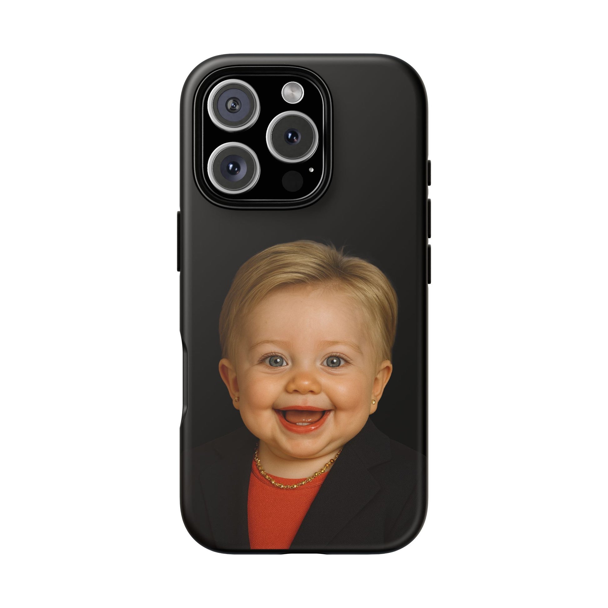 Policy is tough; phones are fragile. This dual-layer case wraps your device with the kind of resilience usually reserved for briefings and boundary-setting. The baby portrait is a reminder that grit starts young and leadership can be adorable without losing its edge.