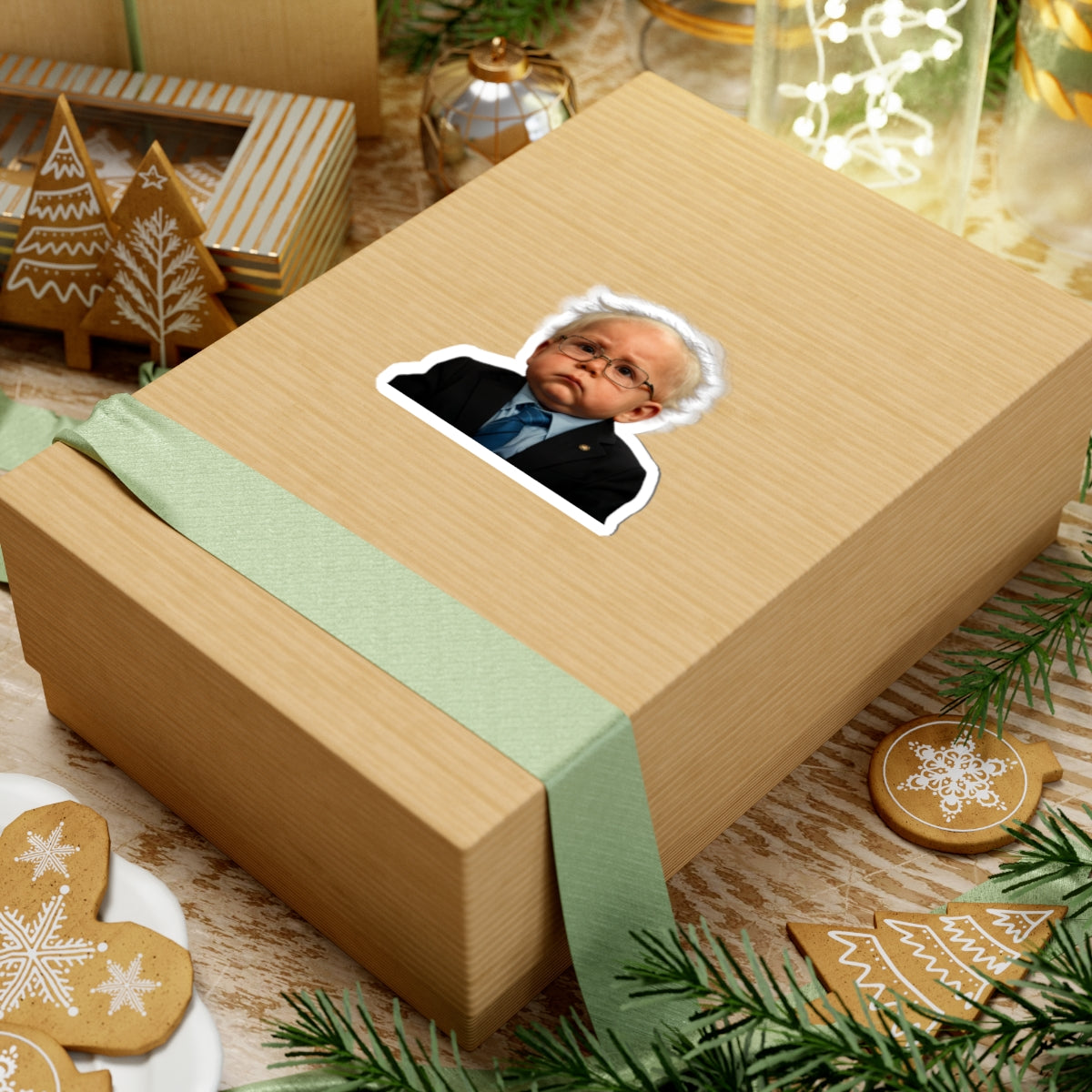 This kiss-cut baby Bernie decal turns any surface into a small-d donor fundraiser for morale. Laptop, water bottle, clipboard—it doesn’t matter. If it’s flat, we stick; if it’s not flat, we still try, because that’s how movements win. Weatherproof, glossy, and stubborn in all the right ways.